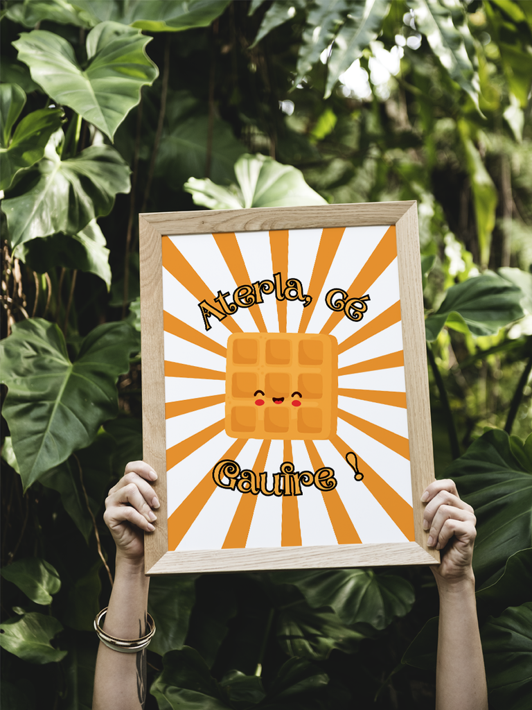 L’affiche "Aterla cé gaufre !" allie une illustration d’une gaufre à une touche locale réunionnaise subtile dans son texte.