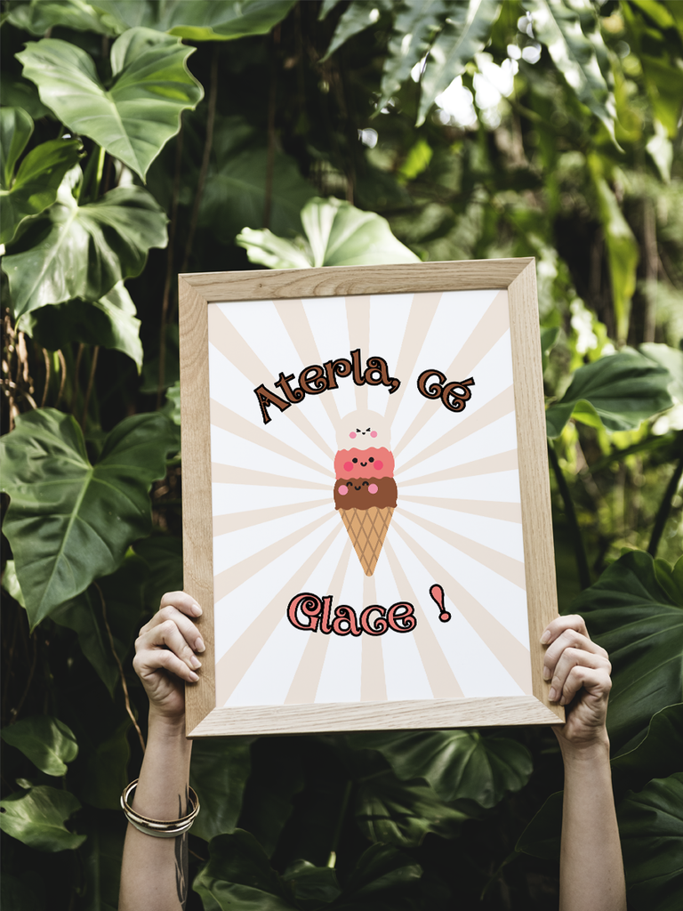L’affiche "Aterla cé glace !" allie une illustration d’une glace à une touche locale réunionnaise subtile dans son texte.