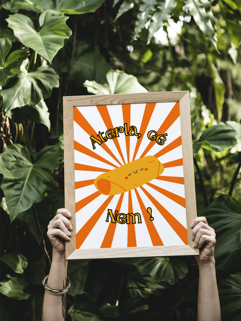 L’affiche "Aterla cé nem !" allie une illustration d’un nem à une touche locale réunionnaise subtile dans son texte.