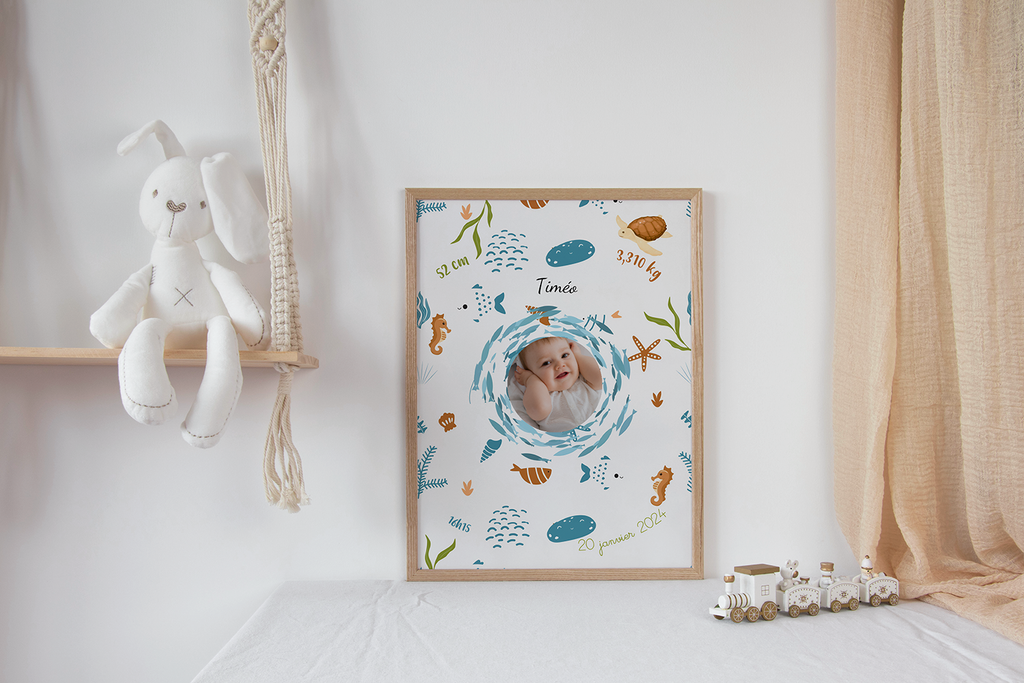 Affiche naissance thème océan