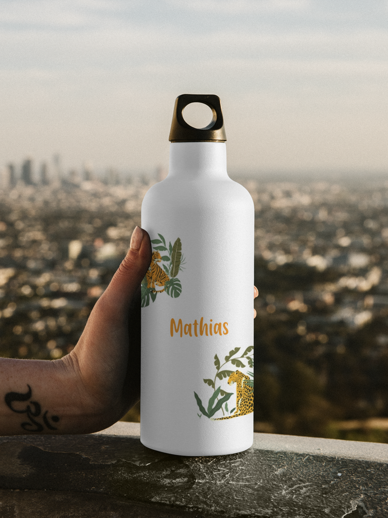 Partez à l’aventure dans la jungle avec notre gourde personnalisée Jungle ! Parfaite pour les petits explorateurs et amoureux des animaux, cette gourde unique intègre le prénom de votre enfant dans un décor sauvage et coloré.