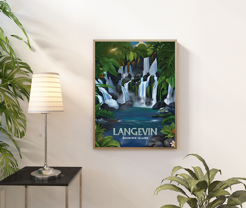 Découvrez la magnifique cascade Langevin de l'île de la Réunion avec cette affiche illustrée.