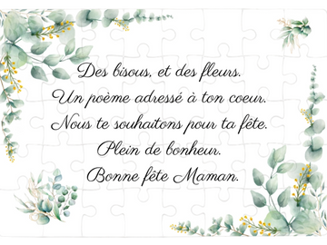 Exprimez vos émotions avec ce puzzle de 40 pièces entièrement personnalisable. Choisissez le thème qui vous plaît parmi ceux proposés et écrivez le message de votre choix : un mot doux, une annonce spéciale, une citation inspirante… tout est possible !