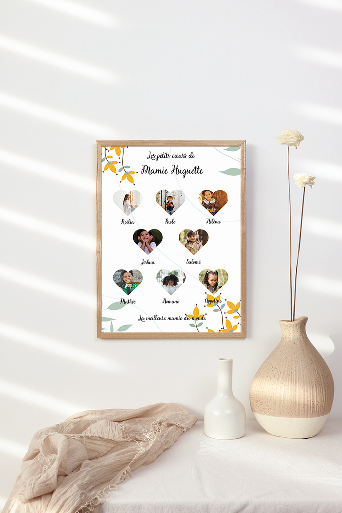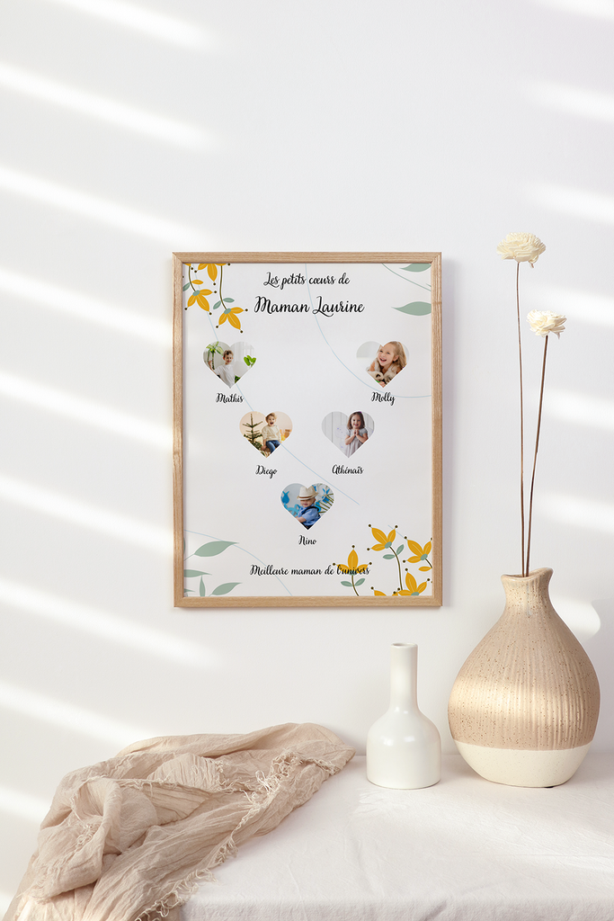 Cette affiche personnalisable "Les petits cœurs de..." est un moyen unique et spécial de mettre en valeur vos enfants (Maman, Papa...) ou petits-enfants (Mamie, Papi...).