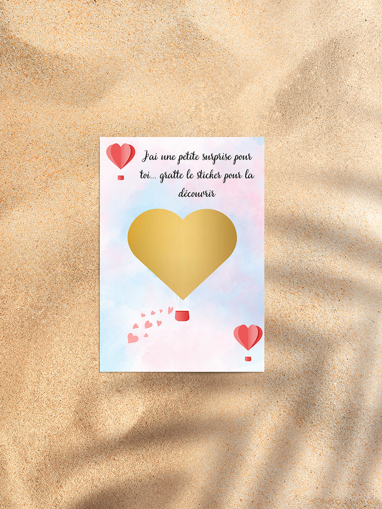 Cette carte à gratter personnalisable sur le thème de la montgolfière vous invite à découvrir une surprise unique et personnalisée.